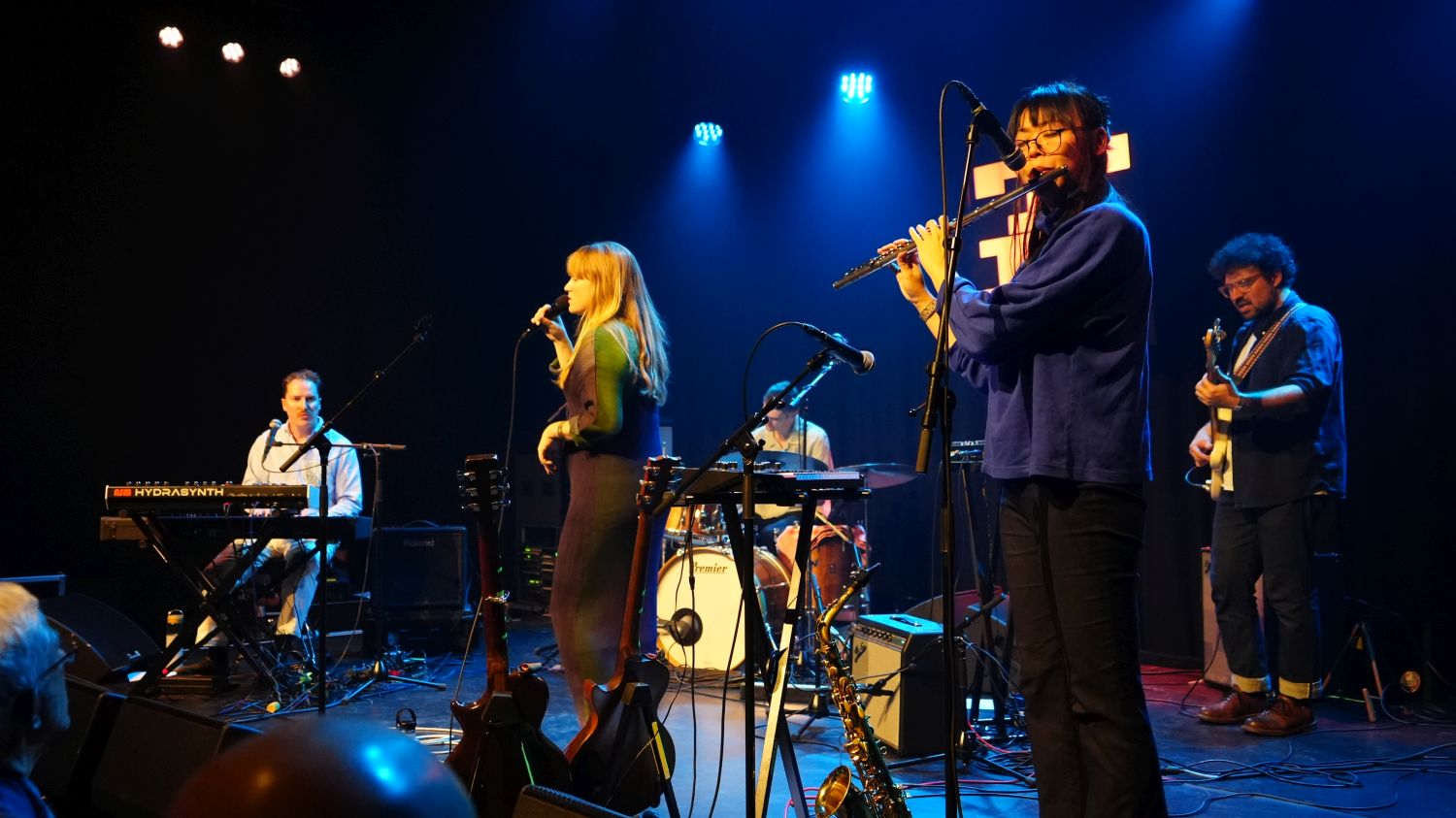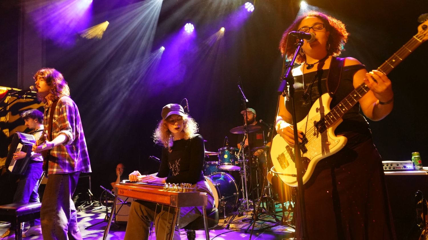 Mit der Spiritualität war es dann allerdings schnell vorbei, als es darum ging, sich einen Weg durch das dicht gedrängte Publikum im kleinen Saal zu bahnen, um noch einen Platz vor der Bühne des kanadischen Ensembles Horsebath im Foyer zu ergattern – das mit etlichen Vorschusslorbeeren angereist ist – und dem Gerücht, dass Sierra Ferrell einen Gastauftritt beim Set des Quintetts haben sollte (was sich aber nicht bewahrheitete). Mit ihrem Retro-60s-Psychedelia-Gitarrenpop-Sound liefen sie bei den Traditionalisten im Publikum natürlich offene Türen ein. Wie ihre berühmten Vorreiter von The Band (nicht zufällig ebenfalls eine ursprünglich kanadische Truppe) wechselten sich die drei Lead-Sänger (Daniel Connolly, Keast & Dagen Mutter), munter ab und übernahmen dabei dann auch jeweils den Gitarrenpart – mal mehr oder weniger psychedelisch und zuweilen gar mit Country-, Honky-Tonk- und Tex-Mex-Elementen bis hin zur Polka flirtend. Das war dann alles schön und gut – aber auf die Dauer dann doch etwas viel des Guten. Den Fans schien das aber zu gefallen, denn hier gab es dann auch für die älteren Semester mal etwas zum Abhotten.