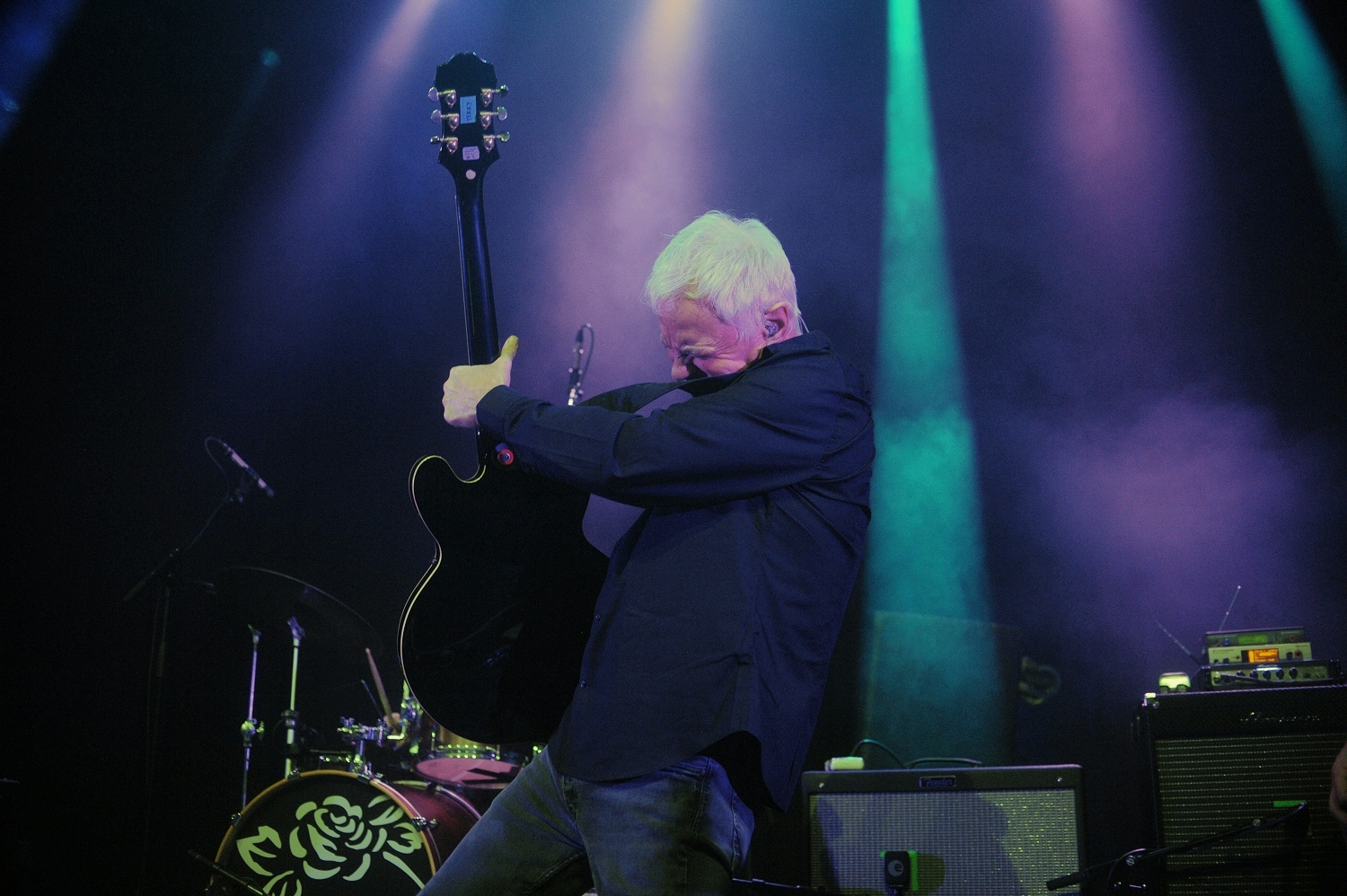 Auch sonst kann er die Freude über den Auftritt nur schwer verhehlen, wenn er viel auf Deutsch redet, mit einem breiten Grinsen im Gesicht kindische Scherze über das Alter seiner Gruppe macht („Wenn ihr mich so seht, fragt ihr euch bestimmt, wie es die Band schon 40 Jahre geben kann – ich habe sie mit fünf gegründet!“) oder sein Können als Gitarrist durch den Kakao zieht.