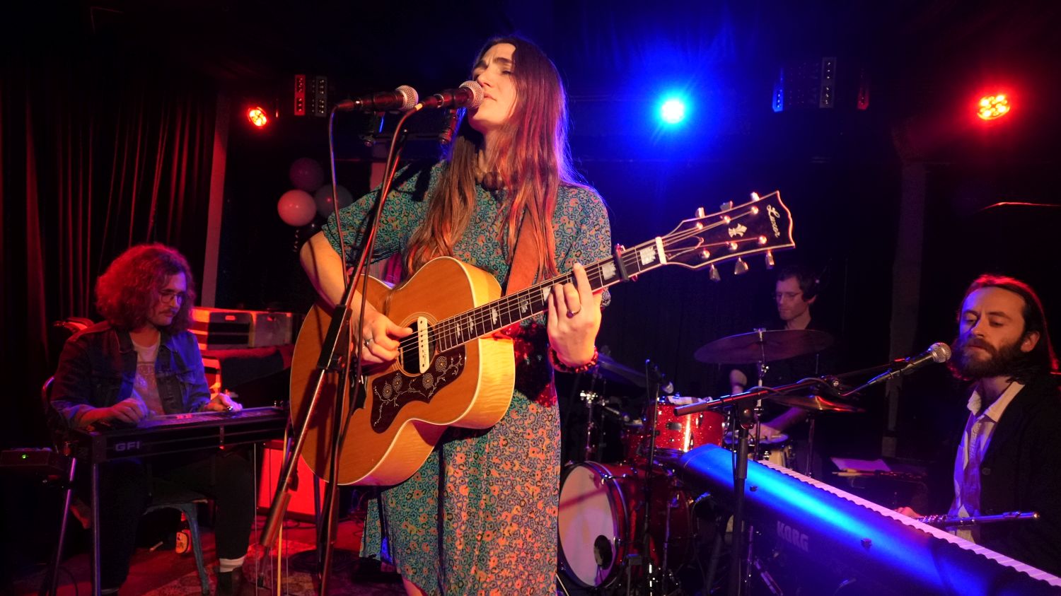 Nach kurzer Umbaupause betrat dann Marla Moya (Gesang, Gitarre) zusammen mit Rich Case (Pedal Steel), Jule Heidmann (Bass), Ran Jacobovitz (Schlagzeug) und Conor Cunningham (Keyboard) die Bühne. Den Auftakt machte das verschrobene „Penumbra“, zugleich auch der Opener von Marlas aktuellem Album. Dieser Song scheint zunächst recht konventionell daherzukommen, schlägt melodisch dann jedoch einige unerwartete Haken. Dass es die nicht immer braucht, bewies der nachfolgende Schunkler „On In My Mind“, bei dem man in den ersten Reihen in lauter glückselige Gesichter schauen konnte: „If sometimes you feel alone, just call I’ll give your heart a home.“ – das vermittelt genau jene Art von Geborgenheit, die sich in diesen Zeiten wahrscheinlich viele von uns sehnlichst wünschen.