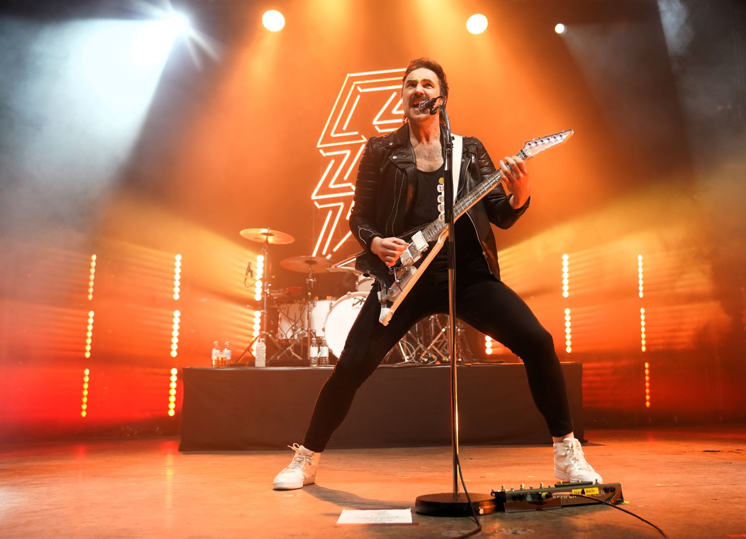 Meist aber greift Grahn zu cooler geformten Gitarren, schwadroniert über die sexuelle Konnotation des Instruments und warnt vor den Gefahren, die von Gitarren ausgingen. Kurz stimmt er Matthias Reims Hyperschlager „Verdammt, ich lieb‘ dich“ an und wir wissen, was er meint. „Ain’t Got Time“ klingt nach BossHoss bei einer Square-Dance-Veranstaltung. Der Song ist aber ohnehin nur der Hintergrund für Grahns Ausflug an das Absperrgitter, wo ein weiblicher Fan mit ihm singt und auf die Kuhglocke haut. Das gerät alles etwas umständlich. Gut, dass Grahn vor den Zugaben wieder auf die Bühne klettert, um die breitbeinigen Rocker „Fireman & Dancer“ und ohne Unterbrechung „Tommy-Gun“ über die Bretter zu prügeln, die durchgehend mitgesungen werden. Dazu blinken die bunten LEDs des Blitz-Logos, Leuchtstäbe drehen sich und Scheinwerferlichter zucken.
