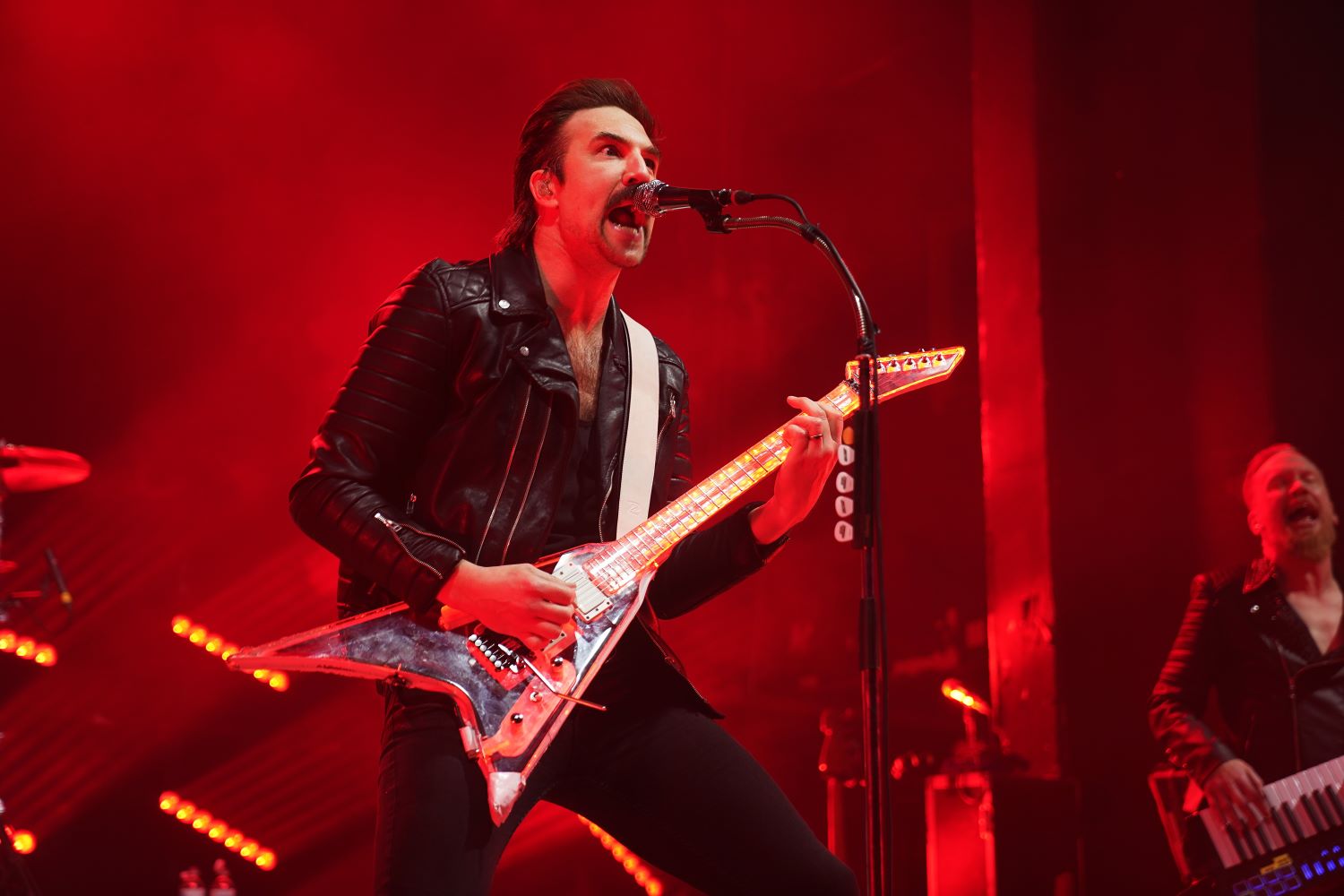 Nach einer halbstündigen Umbaupause entern Royal Republic die Bühne und knallen mit „My House“ und dem Titelsong des „LoveCop“-Albums gleich zwei knackig-prägnante Rock ’n’ Roller vor den Latz. Das Gitarrenintro von „LoveCop“ ist von „Money For Nothing“ (Dire Straits) geborgt. Egal. Schließlich bedienen sich die Schweden ohnehin gern mal bei Kollegen. Mäßig überzeugend gerät die Rock-Variante von „Stayin‘ Alive“ der Bee Gees, obwohl Adam Grahn mit dem Falsett keine Probleme hat, wie er auch im eigenen „Boots“ unterstreicht. Wunderbar dagegen der unkaputtbare Shocking Blue-Klassiker „Venus“ und herrlich trashig Metallicas „Battery“. Bassist Jonas Almén und er seien die Metal-Heads in der Band. In diese Richtung habe sich ihr Sound auch bewegen können, offenbart Grahn, um als Beweis den ähnlich gelagerten Heavy-Rock von „The End“ nachzuschieben.