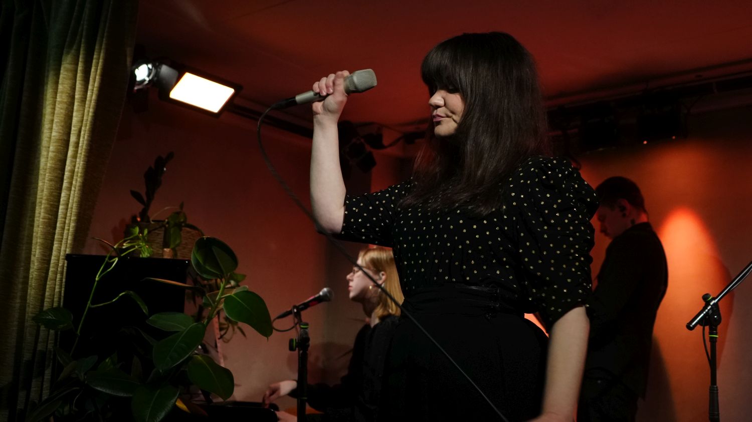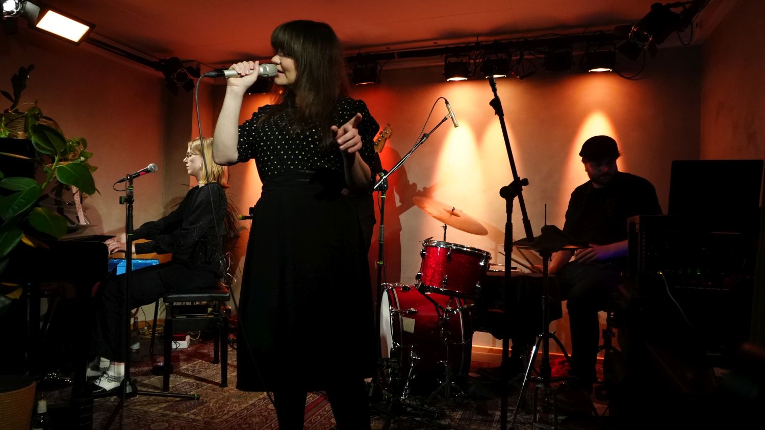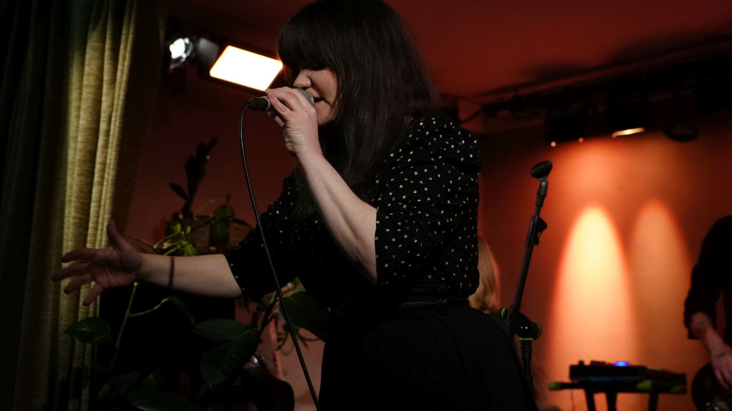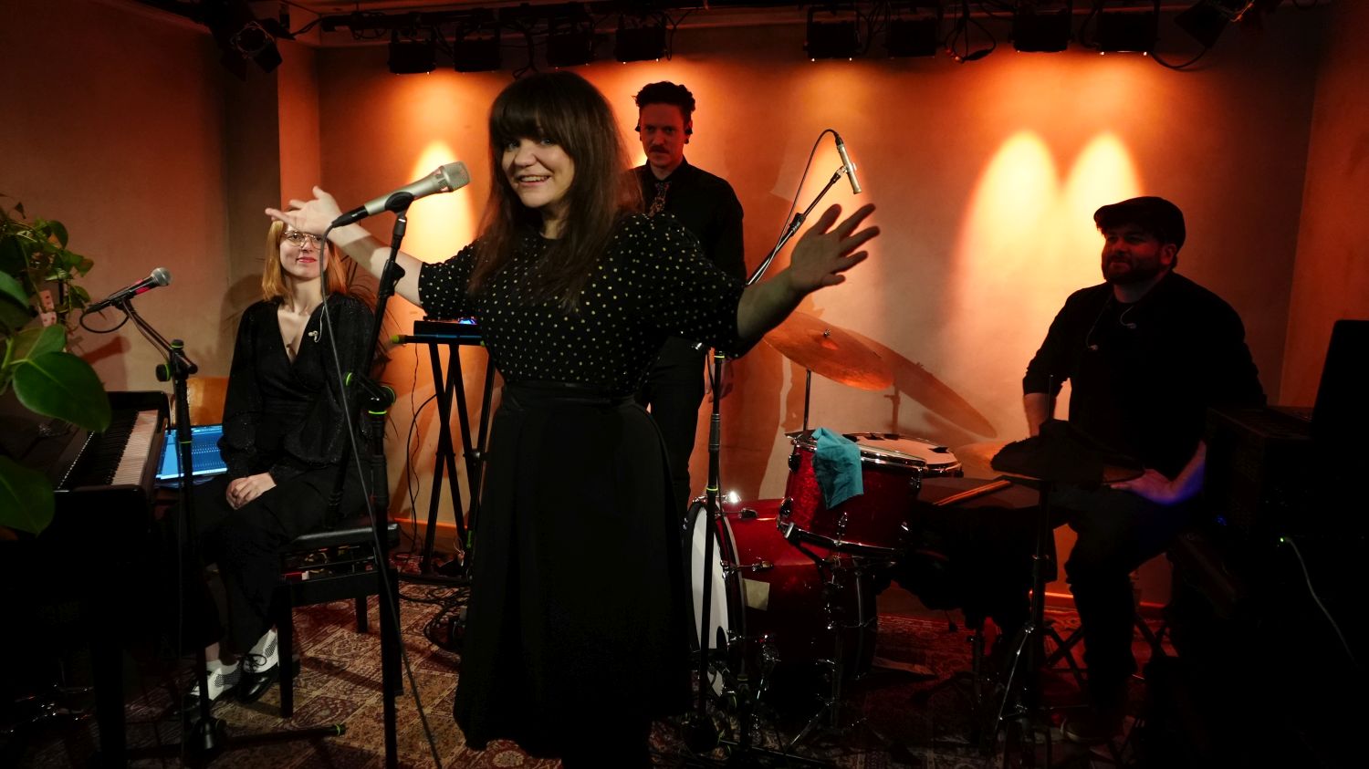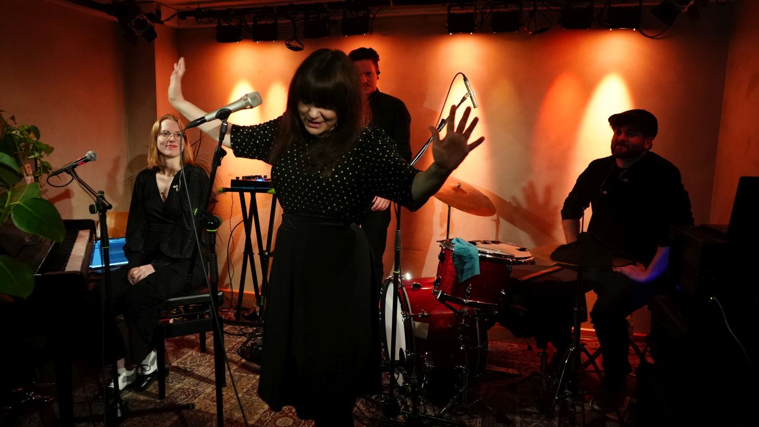 Pop-Musik gab es dann aber anschließend, als Isabell nach einem kurzen Intro ihrer Band mit viel Verve und Begeisterung in die Performance stürzte und gleich zu Beginn mit „Modern Apathy“ und „Grey Area“ zwei der stärksten Songs ihres Debüt-Albums „Beautiful Madness“ präsentierte (und damit die in unserer Rezension bereits gelobte Big-Beat-Opulenz demonstrierte). Nicht schlecht und ziemlich überraschend für eine Show in einem Club, der sich ansonsten seiner Wohnzimmer-Qualitäten rühmt. Interessant war dabei das Set-Up der mit Klavier/Keyboard, Bass und Drums organisch besetzten Band, denn Isabell selbst spielt keine Instrumente und kann somit ihre ganze Energie in eine von weit ausholenden Gesten unterstützte Performance investieren. Etwas seltsam war allerdings die Idee, das hauseigene Klavier, an dem die Pianistin und Harmoniesängerin Tyra Forsheim Eide Platz genommen hatte, zum Publikum hin gedreht aufzustellen. Der Grund dafür war wohl darin zu sehen, dass das Klavier für gewöhnlich an der Bühnenwand steht und die Musiker, die dieses dann verwenden, von einem Teil des Publikums nur von hinten zu sehen sind. Allerdings war Tyra auf diese Weise von einem anderen Teil des Publikums dann gar nicht zu sehen.