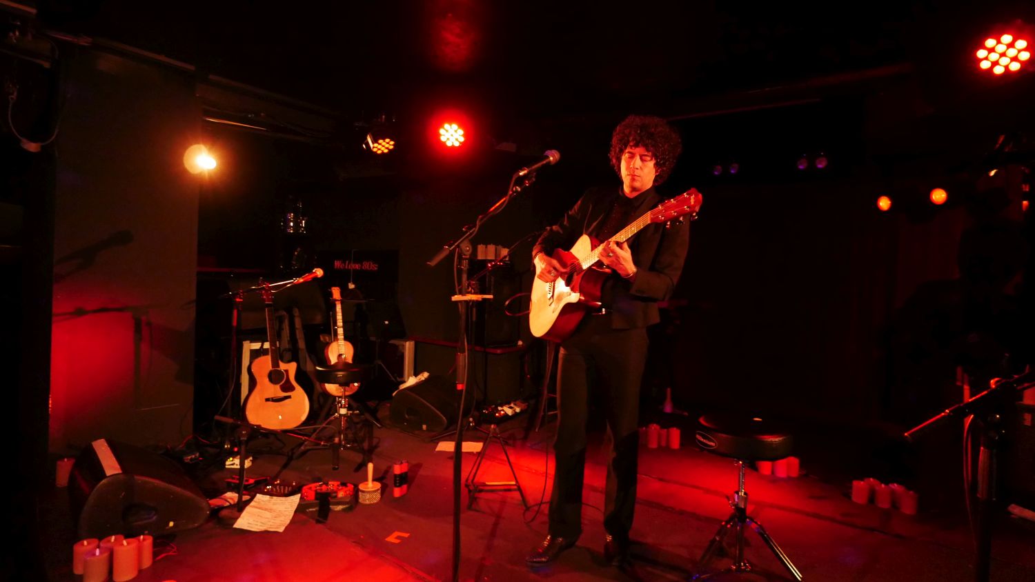 Brian Lopez war es dann auch, der die Show im Berliner Quasimodo-Club mit einem Solo-Set eröffnete. Eine Besonderheit dieses Keller-Clubs ist dabei, dass die Shows dort erst relativ spät beginnen müssen, damit der Theater- und Kino-Betrieb eine Etage höher nicht gestört wird. Es ging dann also schon auf 23:00 Uhr zu, als Lopez schließlich die Show eröffnete. „Schön, dass hier auch Zuschauer sind“, witzelte der Mann aus Arizona, „…um 23:00 Uhr abends an einem kalten Mittwoch.“ Schließlich räumte er noch ein, dass er sich ja durchaus freue, endlich mal wieder Schnee sehen zu können – denn in seiner Heimat sei es ja grundsätzlich 400° wärmer als im zugeschneiten Berlin.