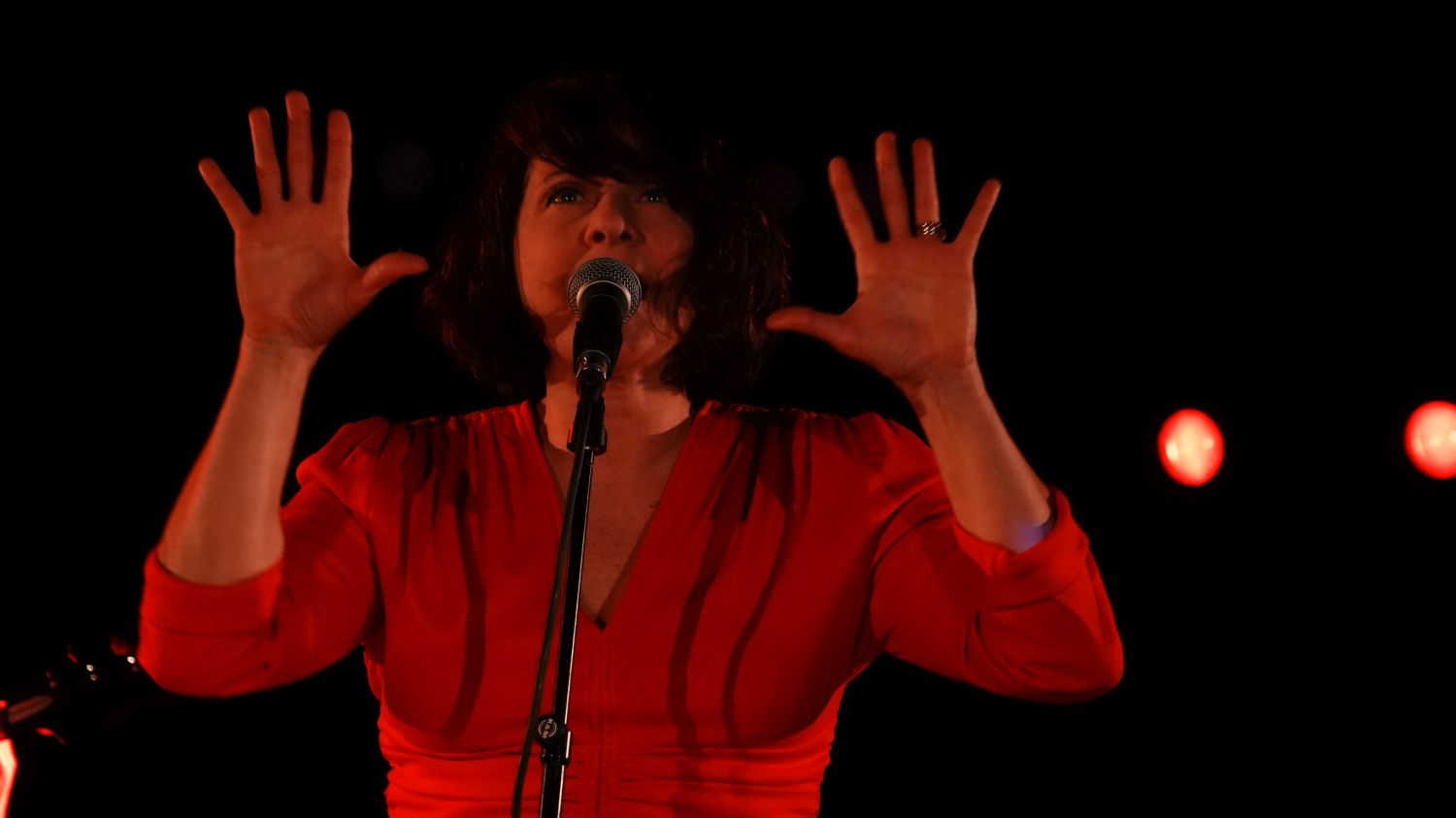 Die echten Highlights verbargen sich dann aber im letzten Drittel der Show. Da war zum Beispiel das Duett „Cold Hands“, das Mélanie mit Brian Lopez Rücken an Rücken performte und dabei eine theatralische Darbietung sondergleichen inszenierte. Mélanie Pain hat es als Performerin eh mit der Theatralik – aber auf eine charmante, bodenständige Art. So turnt sie gerne mit Rasseln und anderen Perkussion-Instrumenten auf der Bühne herum und begleitet ihren Vortrag mit weit ausholenden, dramatischen Gesten – räumt dann aber auch ein, dass sie ihr Kazoo-Solo auf einem unprofessionellen Spielzeug-Instrument geblasen habe.