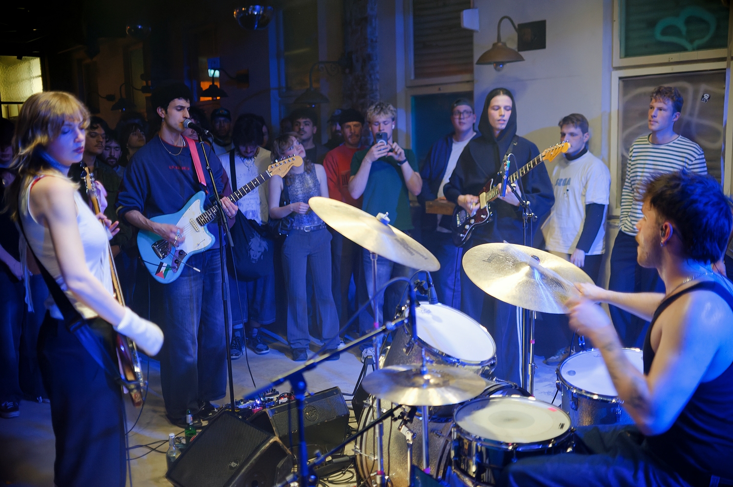 Die erste Überraschung erleben zumindest die Uneingeweihten schon beim Betreten der kleinen Ehrenfelder Location. Dort, wo normalerweise das Bühnenpodest steht, gibt es an diesem Abend – nichts! Die Band hat ihr Equipment ebenerdig mitten im Saal aufgebaut, um das Konzert an allen Seiten umringt von den Zuschauerinnen und Zuschauern zu spielen. Da bekommt die Floskel „Mittendrin, statt nur dabei“ plötzlich ganz neue Dimensionen, und bei den wenigen älteren Semestern im Saal kommen vermutlich Erinnerungen an Fugazi hoch.