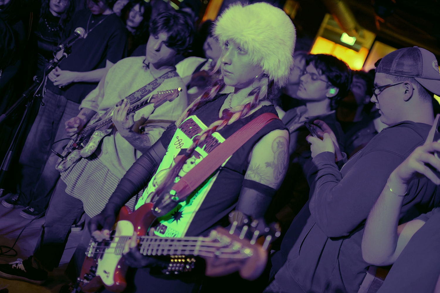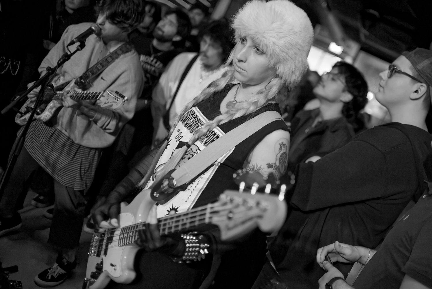 Was für grima Ausnahmezustand bedeutet, ist für TAGABOW die Werkseinstellung. Obwohl der im wahrsten Sinne des Wortes enge Kontakt zum Publikum für die Band klar Teil des Konzepts ist, üben sich Dulgarian (Gitarre, Gesang), Emily Lofting (Bass), PJ Carroll (Gitarre) und Ben Opatut (Schlagzeug) ansonsten in strikter Verweigerungshaltung.