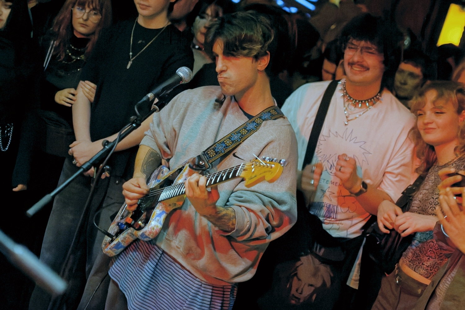 Das ist besonders schade, weil Javi die Texte seiner bittersüßen, Reverb-getränkten Shoegaze-Songs in seiner Muttersprache Spanisch singt und die Band zumindest an diesem Abend so ausgerechnet ihr Alleinstellungsmerkmal einbüßt. Zum Glück gibt es schon wenige Tage nach diesem Auftritt die Gelegenheit, grima im Tsunami mit einem „traditionellen“ Bühnenaufbau zu erleben.