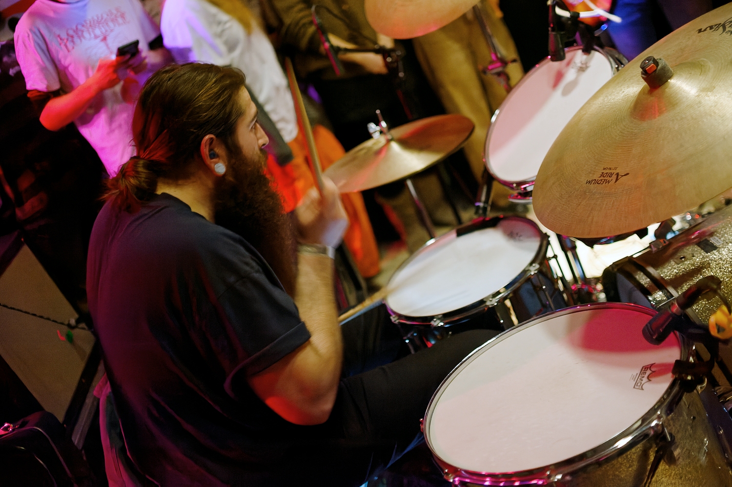 Atempausen gibt bei dazwischen bei einem halben Dutzend „Interlude Jam“ genannten Instrumentals, bei denen die vier relaxt zu Sample-Collagen aus der Konserve jammen und Dulgarian die Gelegenheit hat, seine Gitarre wegzustellen, sich an Lofting und dem Publikum vorbeizuquetschen und die Einstellungen an seinem Verstärker millimeterweise zu ändern.