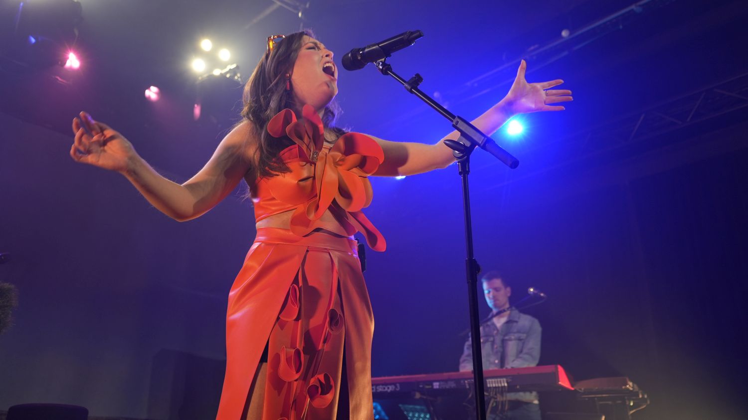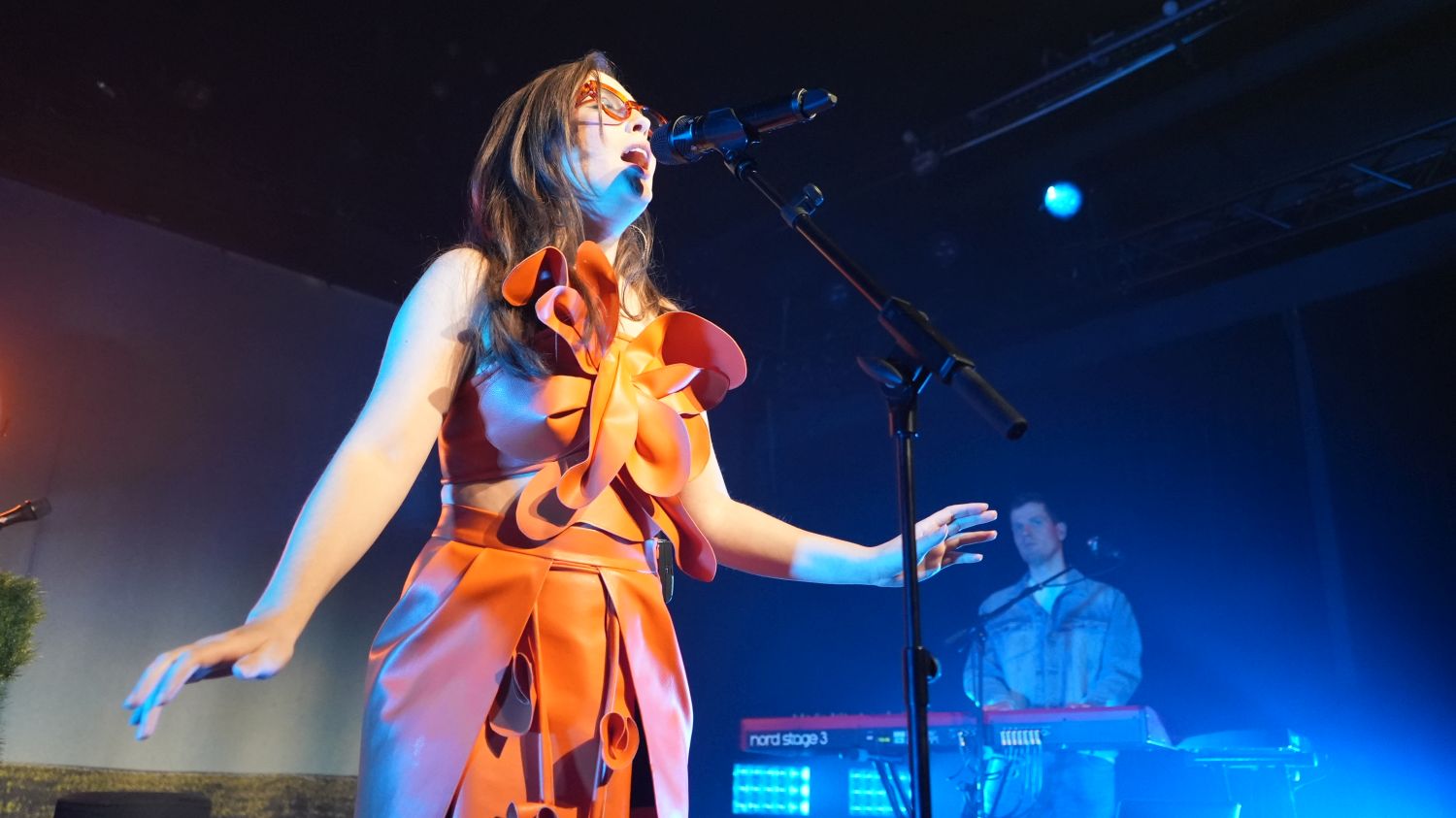Alice Merton startete die Show mit einigen Überraschungen. So nahm sie für den ersten Track „Coasting“ hinter einem Piano Platz, spielte beim anschließenden Titeltrack „Visions“ Bass und griff erst beim dritten Stück „Mirage“ zum Mikro, um sich dem Publikum zu widmen. Auf die Sache nach dem Bass ging sie später noch einmal ein: Erst vor kurzem habe sie gelernt, das Instrument zu spielen und sei noch nicht besonders gut darin – versprach aber, in Zukunft dann noch besser zu werden. Stolz sei sie indes auf den coolen Rickenbacker-Bass für Linkshänder, der so auch nicht an jeder Straßenecke zu finden ist. Besonders bemerkbar machte sich das musikalisch allerdings nicht – denn der Keyboarder ihrer Tour-Band sorgte mit der linken Hand auch dann für Bass-Sounds, wenn Alice sich auf das Singen konzentrierte und den Bass eher als Stage-Prop benutzte.