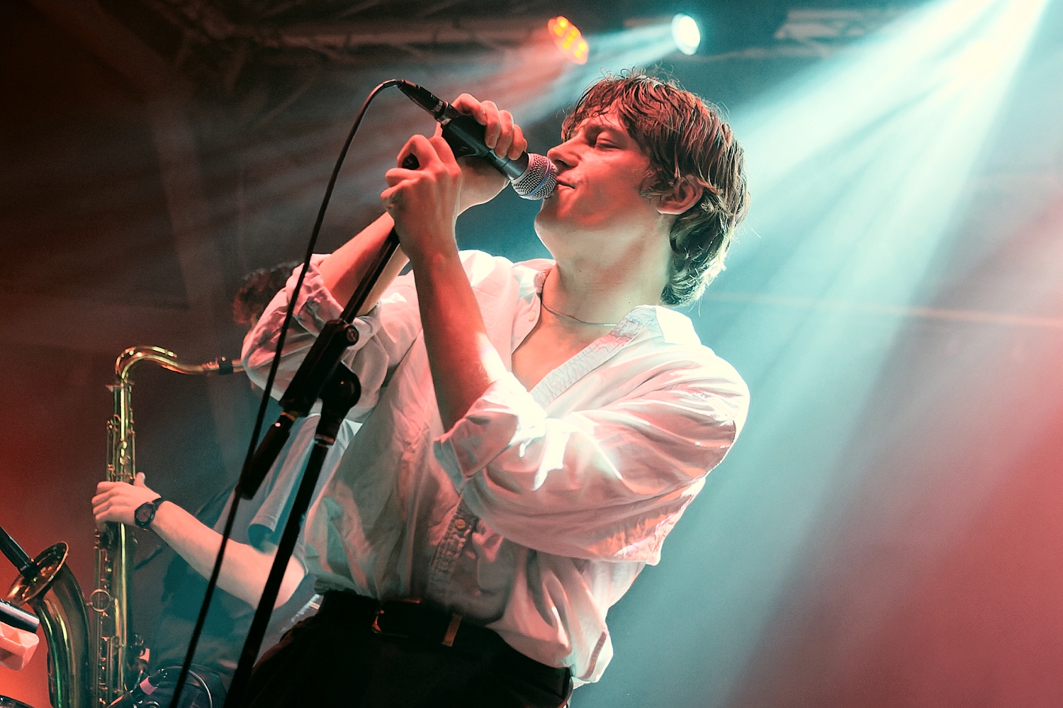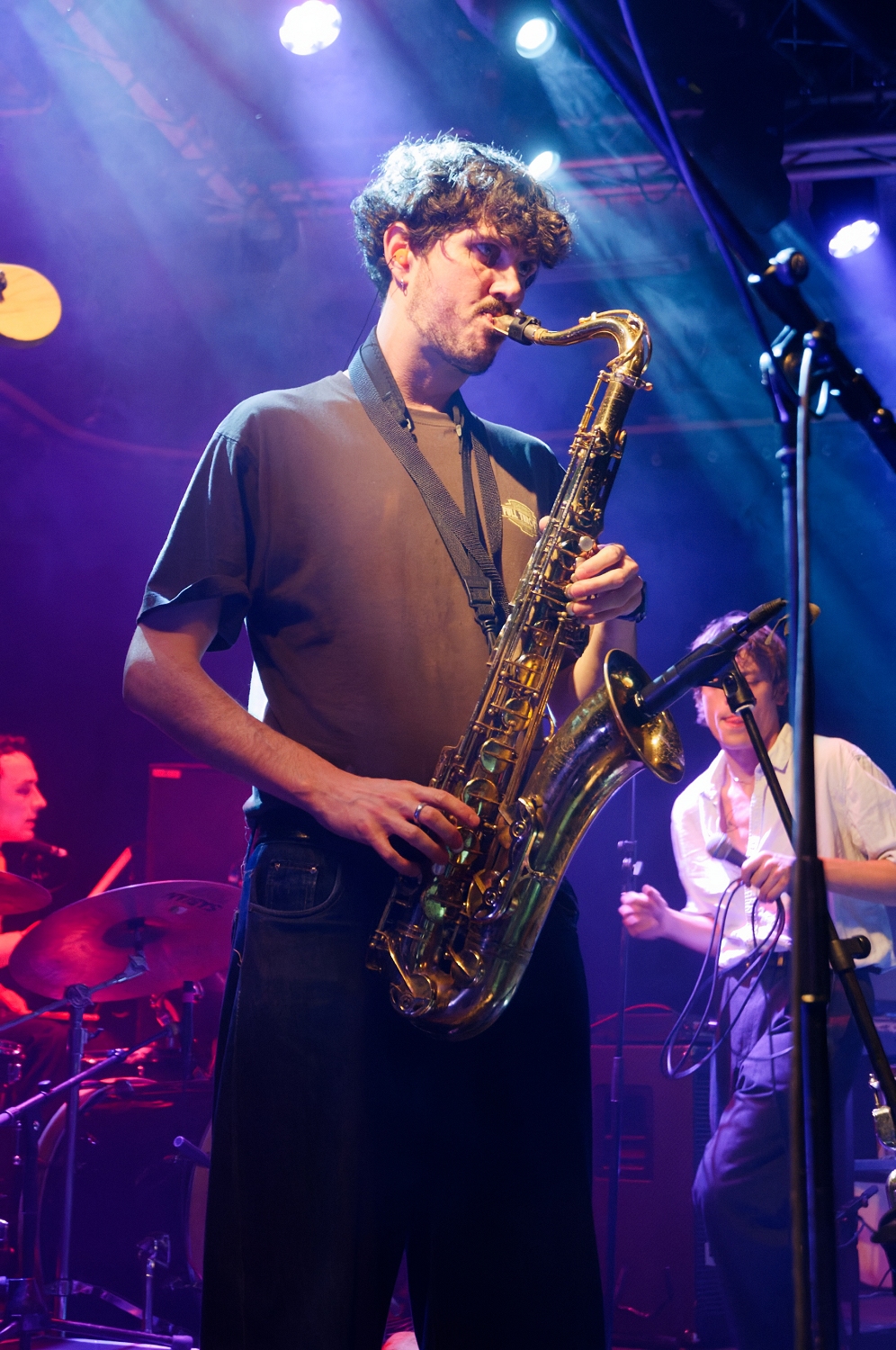 Auch wenn der schweißtreibende Exzess früherer Konzerte dadurch ein Stück weit in den Hintergrund gerät: In Songs wie „It Comes Creeping“ oder „Cheers!“ lebt das elektrisierende Chaos der frühen Tage mit neuen Vorzeichen weiter und wird nicht zuletzt durch Saxofonist (und Teilzeit-Perkussionist) Nathan Pigott, der sich an diesem Abend als heimliche Wunderwaffe der Band entpuppt, und den fantasievoll-facettenreichen Einsatz seines Instruments auf eine neue Stufe gehoben.