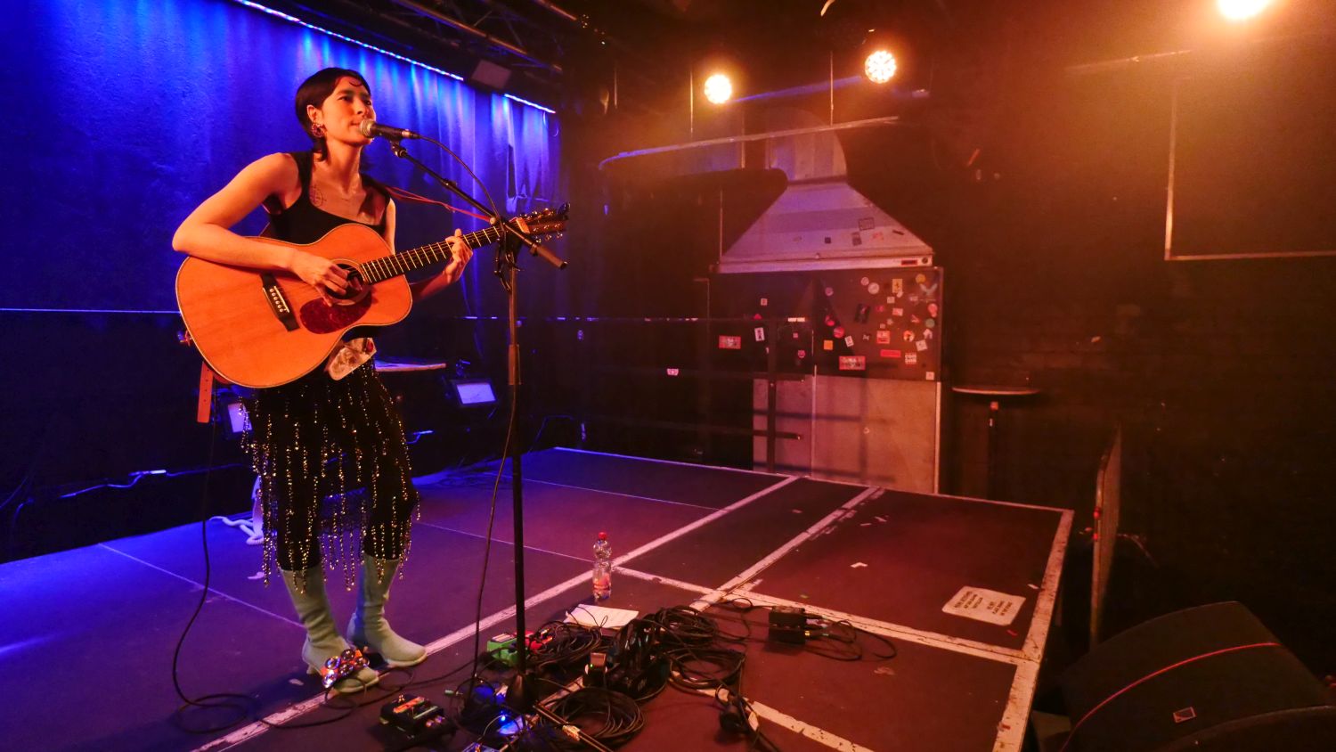 Dafür gab es dann einen Querschnitt durch ihr bisheriges Oeuvre – inklusive ihres Signature-Songs „Hemispheres“, der bereits in der Phase vor dem EP-Projekt erschienen war. Sophia präsentierte das Set alleine mit Gitarre, Stimme und Effektpedal – und konzentrierte sich dabei darauf, das stets anspruchsvoll und ambitioniert strukturierte Material in einem eher konventionellen Folk-Setting zu präsentieren, wobei sie alleine die Effekte dazu verwendete, subtil auch auf ihre Indie-Rock-Roots aufmerksam zu machen. Im Vergleich zu früheren Solo-Shows schien Sophia das Ganze mit einer Art heiterer Gelassenheit zu präsentieren (was bei komplexer Musik wie der ihren gar nicht so einfach ist) – die sie darauf zurückführte, weniger nervös als früher gewesen zu sein.