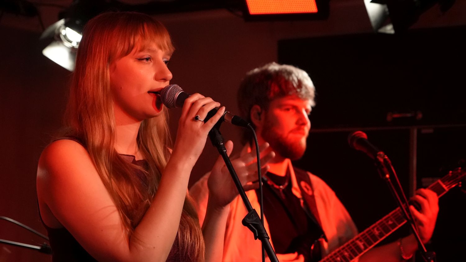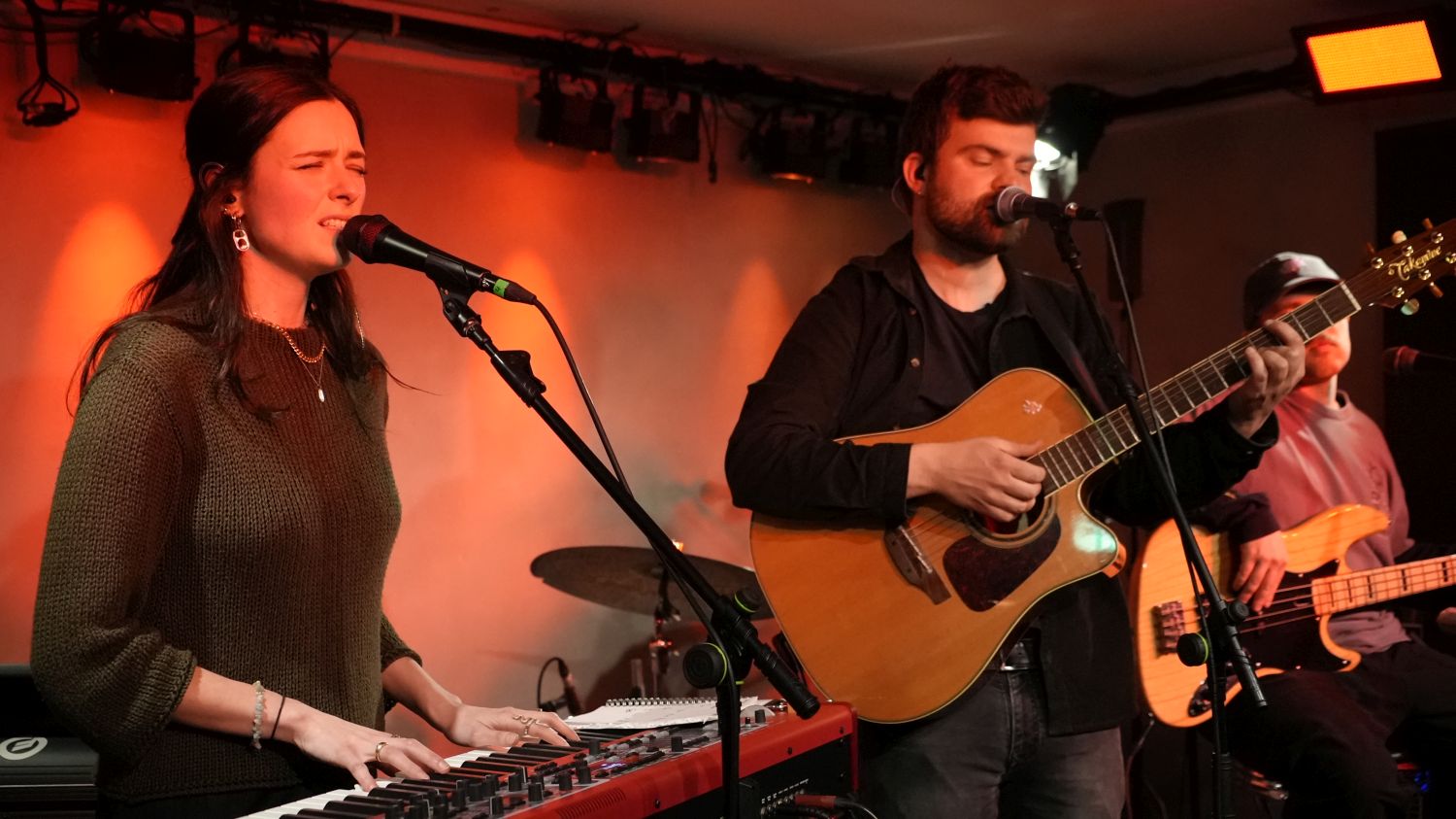 Als handverlesenen Support-Act hatte Nicola die junge Songwriterin Bea Keller und ihren Partner Philipp „Umbra“ Werth mitgebracht, die das Publikum (gelegentlich unterstützt von Bassist Jules) – trotz einer schweren Erkältung – mit ihrem angenehm temperierten Mädchenpop unterhielten, der letztlich in gewisser Hinsicht auch kompatibel war mit dem, was Vinter im Folgenden präsentieren sollten – allerdings mit der Einschränkung, dass die Arrangements mit Klavier, Gitarre und eben gelegentlich Bass – deutlich geradliniger ausgerichtet waren, was dann auch Schwächen im linear angelegten Songwriting offenlegte. Dennoch befindet sich Bea Keller mit ihrem Emanzipations-, Selbstfindungs- und Empowerment-Songs auf Folkpop-Basis durchaus in guter Gesellschaft, wie die Coverversion des von Maisie Peters und Marcus Mumford geschriebenen Songs „Say My Name In Your Sleep“ zeigte, die Bea und Philipp ins Programm aufgenommen hatten, weil dieser Song so klingt, wie das, was das Duo selbst auch macht. Kein Wunder – denn hier wie da wird die persönliche Betroffenheit, das Sehnen nach der Geborgenheit und der elegante Liebesschmerz auf elegante, wenngleich generische Weise Genrekonform in Liedform gegossen.