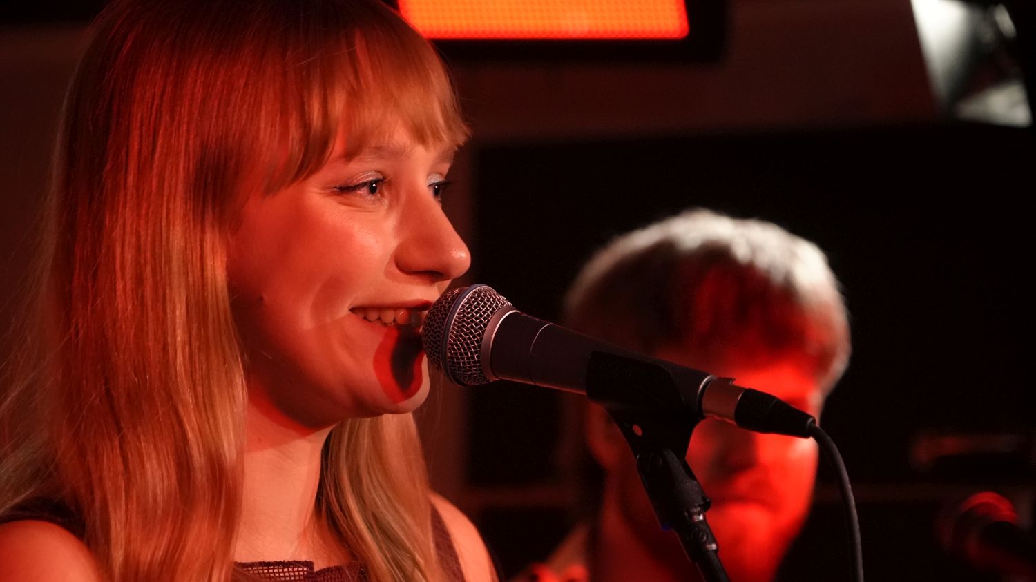 Dazu gehörten dann so subtile Details, wie ein – zusätzlich zum E-Bass – gelegentlich eingesetzter Synth-Bass, der wirklich ausgezeichnete Sound von Nicolas Akustik-Gitarre (durchaus nicht selbstverständlich in einem soliden Band-Umfeld, in dem zudem ja Nathan Scheid als wandlungsfähiger E-Gitarrist dominierte) oder die spontane Eingebung der Pianistin Lena, bei der letzten Zugabe auf das hauseigene Klavier auszuweichen. Letzteres geschah allerdings eher unfreiwillig: Während die Show sich dem Ende zuneigte, kollaborierte ein Zuschauer im hinteren Teil des ziemlich ausverkauften Clubs und musste zunächst von Sanitätern betreut werden, bevor das Konzert dann mit einer akustischen Version des Songs „In My Head“ vom Debütalbum zu Ende gebracht werden konnte. Die Wohngemeinschaft trägt ihren Namen nicht umsonst: Aufgrund des heimeligen Settings müssen die Konzerte wegen der Anwohner um 22 Uhr eigentlich zu Ende sein. Wenn dann „überzogen“ werden muss, muss das so leise wie möglich geschehen.