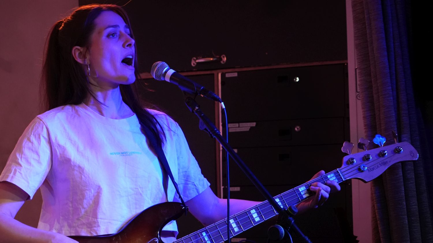 In der Mitte der Show gab es dann eine spontane Zigarettenpause (die natürlich nach demokratischen Prinzipien beschlossen wurde) – was auch deshalb eine gute Idee war, weil just an diesem Tag die Klimaanlage in der Wohngemeinschaft ausgefallen war und die Luft dann doch ziemlich stickig geworden war. In der zweiten Hälfte der Show ging es dann um die ernsteren Themen – wie z.B. das Anti-Mysogionie-Manifest „23 Wow“ oder Rosas Ode an Menschen, die vorgeben, „Keine Probleme“ zu haben. Und dann gab es mit dem EP-Track „Dirt In The Ground“ auch noch einen einzelnen Track auf Englisch – und der ging dann auch gleich in Richtung Indie-Rock.
